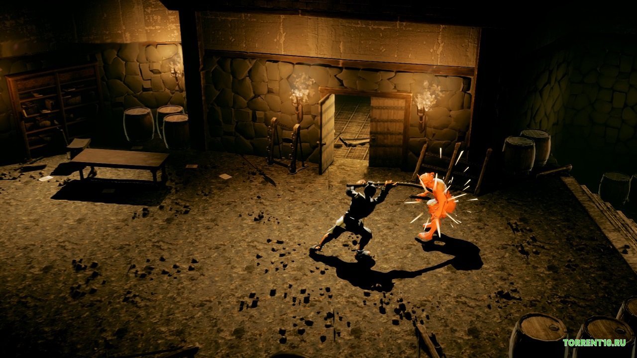 Изначально – следует изучить все доступные приёмы и как следует ими овладеть. Разбежавшись и оттолкнувшись от земли с помощью вашего посоха, вы сможете совершить мощный прыжок и нанести сокрушительный удар по врагу. После такого, он уже не встанет. В представляемой игре 9 Monkeys of Shaolin скачать торрент которой вы сможете на нашем игровой сервере, следует внимательно изучать окружающую вас местность. Многое, будь то постройки или природные объекты, пусть и ненадолго, смогут послужить вам хорошим укрытием.