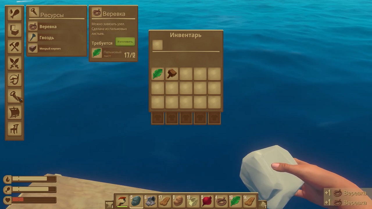 - Постройте себе настоящий плот. Из кусочка дерева, вы должны создать настоящее плавательное средство. Вы должны будете искать не только предметы, но и оружие. Ваш крюк, изначально данный вам в игре, вы будете использовать. Но тут еще нужны и другие оборонительные средства.