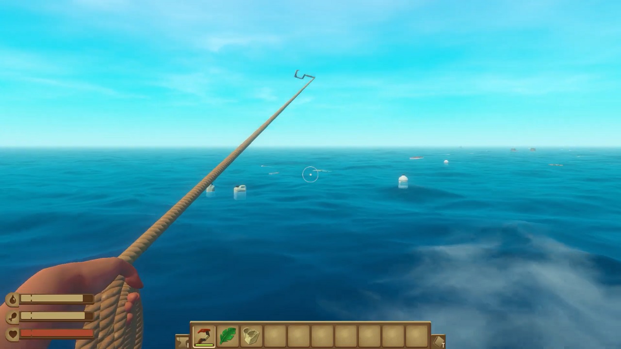 Вы попадаете на морские просторы. Ваше главное оружие для выживания – это длинный крюк, при помощи которого вы сможете подобрать с морских глубин самые полезные предметы. Изначально вы плывете на маленькой дощечке. Но из нее вы должны построить настоящий плот, на котором вы далее будете дрейфовать по морским просторам. Ваш созданный плот можно модернизировать по ходу игры. Можно вырастить на плоту пальмы и другие тропические растения. А даже можно будет подсадить необычных персонажей, которых вы найдете на вашем игровом пути. Когда вы будете в игре вылавливать морской мусор, будьте бдительны, ведь самые опасные морские хищники – акулы, могут препятствовать вам прохождению этапов игры. Акулы очень агрессивны.