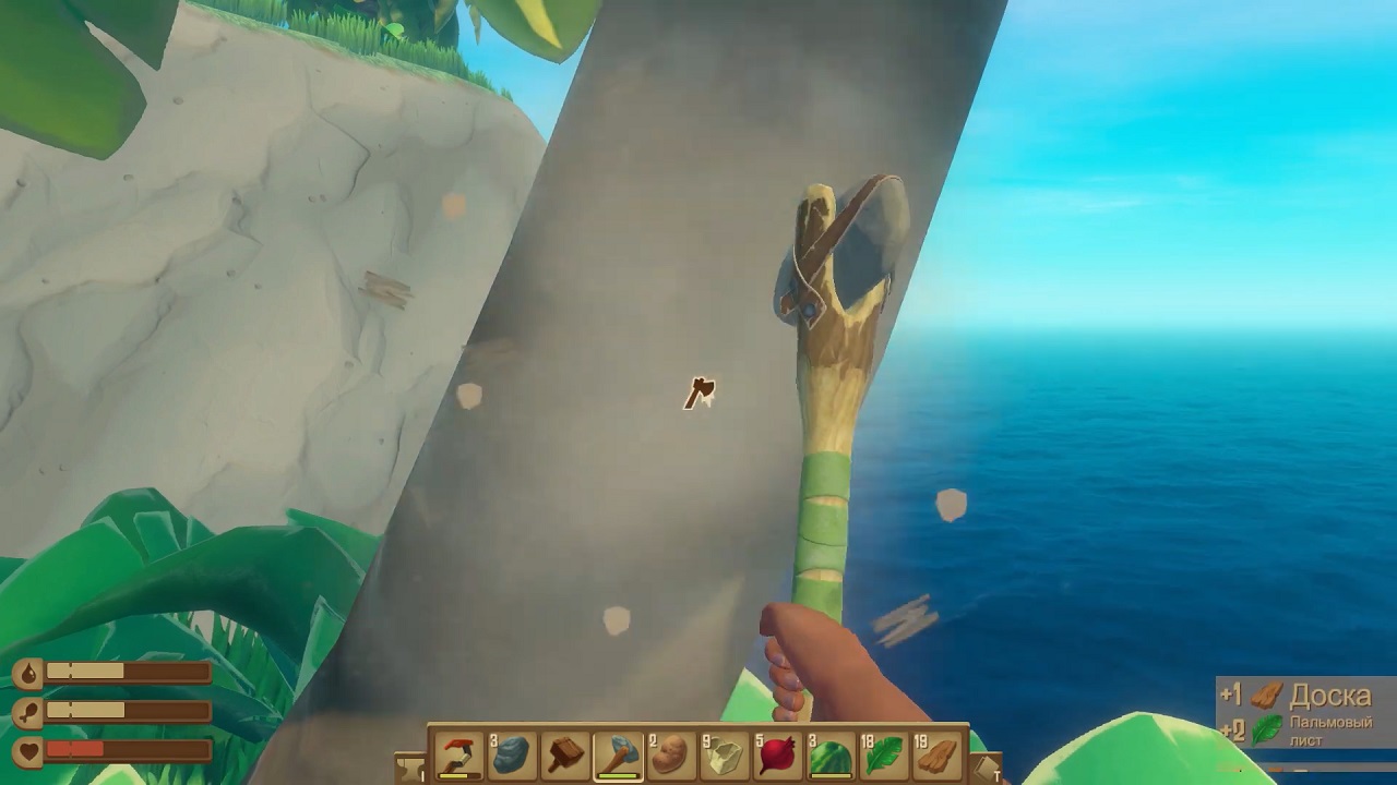 - Выживаем и побеждаем. Вы не просто дрейфуете по океанской глади, вы должны искать себе провизию и пропитание, чтобы выжить в непростых условиях. Ищите кокосы, забирайтесь на пальмы, установите на свой плот как можно больше найденных растений.
