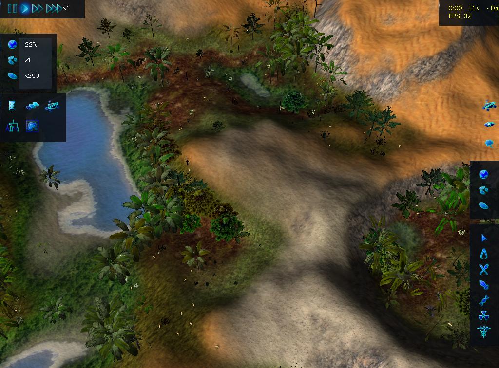 Многие любители компьютерных игр знают об эволюции человечества и природы только из книг, или научных передач. Теперь же у них появилась возможность самим следить за всем этим и даже принимать в глобальном процессе непосредственное участие. Такую возможность предоставляет игра Species: Artificial Life Real Evolution, скачать торрент на русском которой можно, используя возможности нашего портала. Данный продукт – это своеобразный симулятор эволюции. Здесь можно развивать многие аспекты. Какие именно – игроки выберут сами. Изначально у геймеров будет только наполовину пустая карта и несколько инструментов. Через некоторое время они смогут при помощи этих инструментов построить целое поселение, но перед этим надо создать все условия для того, чтобы природа тоже эволюционировала. Это довольно интересный проект, в котором игрокам много что придется начинать с нуля. Именно от геймеров зависит то, насколько стремительно и правильно будет эволюционировать природа. Геймплей позволяет постепенно расширять территории, выводить новые виды растений и просто озеленять планету. По мере прохождения будут добавляться новые игровые элементы и инструменты. Прекрасным дополнением к игровому процессу является хорошая графика.