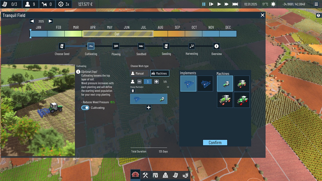 Разместите свою ферму в любой точке мира. Основываясь на данных OSM и принимая во внимание фактические значения почвы и температуры. Используйте редактор карт, чтобы изменить восемь существующих данных. Постройте и расширяйте свою собственную ферму. Приобретайте сельскохозяйственную технику, такую как тракторы, комбайны и другое оборудование. Выращивайте множество различных культур. Учитывайте сезонные колебания и их различное влияние на рост растений. Заключайте и выполняйте контракты с местными компаниями. Заботьтесь о животных и позволяйте им производить продукты для вас.